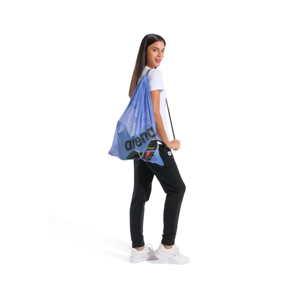 Η μεγάλη, αθλητική τσάντα της σειράς “One Go” (τύπος Mesh) είναι ιδανική για τη μεταφορά του εξοπλισμού προπόνησης ή άλλων αντικειμένων. Μπορείτε να τη μεταφέρετε ως κανονική τσάντα από τις χειρολαβές αλλά και στην πλάτη όπως μία κλασσική τσάντα πλάτης. Για μεγαλύτερη ευκολία έχει πρακτική λαβή ώστε να μπορείτε να την κρεμάσετε στα αποδυτήρια ή πάνω σε μια άλλη τσάντα. Είναι φτιαγμένη από ενισχυμένο και με ιδιαίτερη αντοχή δικτυωτό ύφασμα Polyester που στεγνώνει πολύ γρήγορα.
