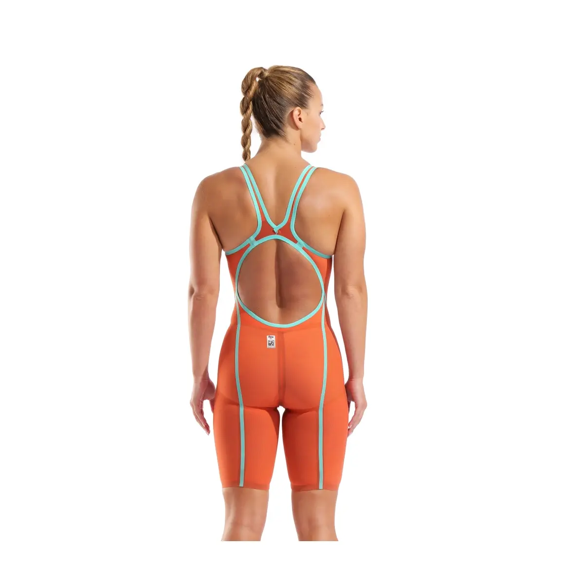 Υπέροχο, γυναικείο, αγωνιστικό μαγιό ως το γόνατο με εντυπωσιακούς ρόμβους. Αμάνικο με εργονομική πλάτη προσφέρει ορθή υποστήριξη στο στήθος και τη μέση και μεγάλη ελευθερία κινήσεων στα χέρια.
