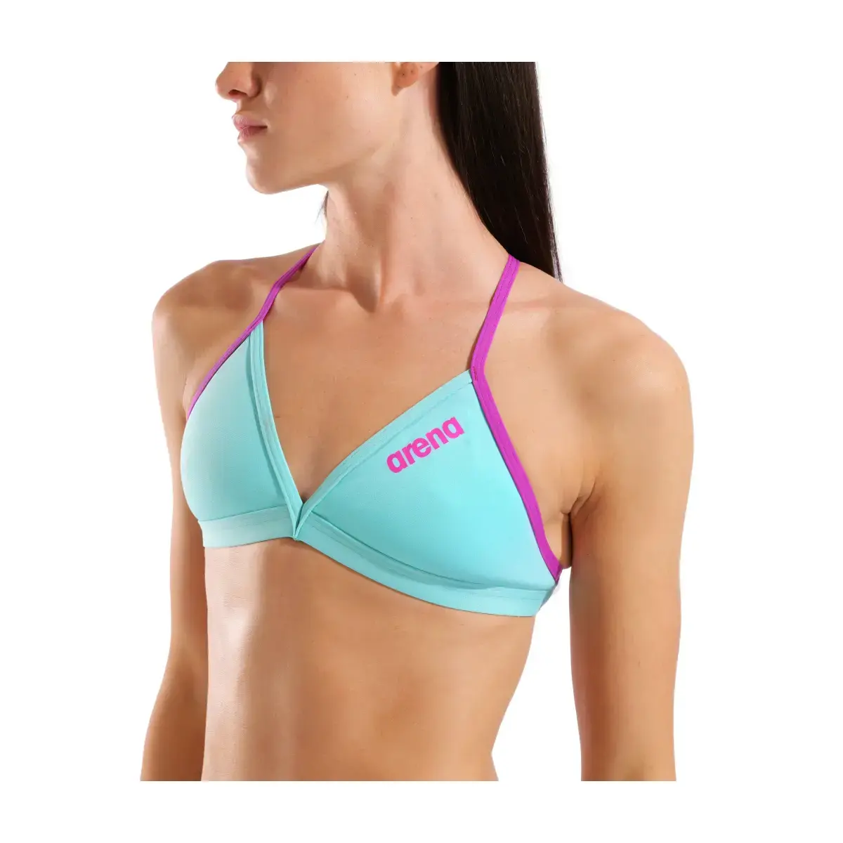 Με ρυθμιζόμενα κορδόνια μπορείτε να δέσετε το αθλητικό τοπ – μαγιό της σειράς “Team”, που εφαρμόζει άνετα για να κολυμπάτε δίχως ν’ αποσπάται η προσοχή σας. Οι λεπτές τιράντες πέφτουν όμορφα και το τριγωνικό σχήμα του μαγιό υπογραμμίζει τη θηλυκότητα και προσφέρει  την τέλεια κάλυψη. Είναι κατασκευασμένο από ανθεκτικό στο χλώριο ύφασμα με την τεχνολογία MaxLife Eco για να μπορεί να χρησιμοποιηθεί ενώ κάνετε προπονήσεις, μετά την προπόνηση ή συνδυάζοντάς το με διαφορετικά μαγιό – μπικίνι για το κάτω μέρος του σώματος.