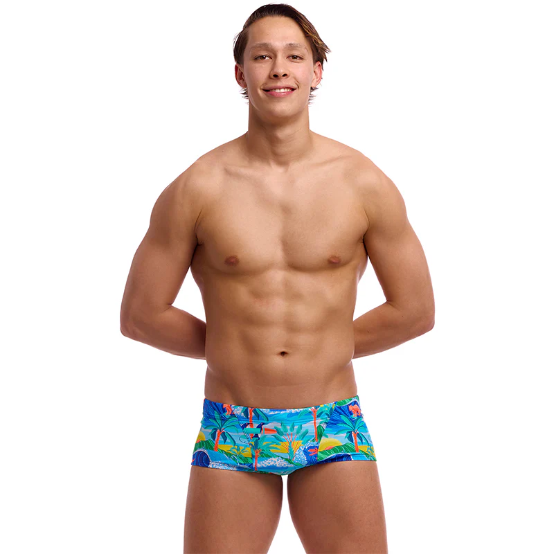 Το μαγιό Funky Trunks Classic είναι ιδανικό για κολυμβητές που θέλουν να τα δώσουν όλα στο νερό. Με ένα κομψό τύπωμα αυτό το μαγιό προσφέρει άνετη εφαρμογή και εξαιρετική στήριξη χάρη στα πλαϊνά ύψους 6,5 ιντσών και την ραμμένη μπροστινή τσέπη. Ιδανικό για πολύωρες προπονήσεις, το μαγιό Funky Trunks Classic σας επιτρέπει να κολυμπάτε με άνεση και σας βοηθά να πετύχετε τους στόχους σας.