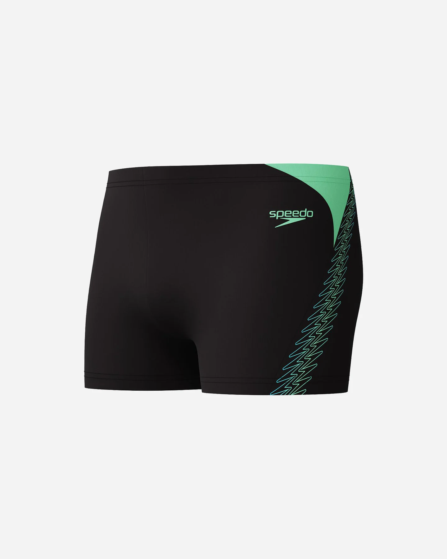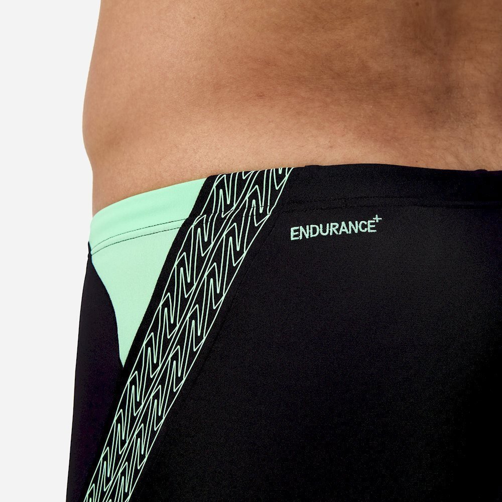 Classic sports styling. We’ve raided the Speedo design archives for the new Hyper Boom Spliced Aquashort, which features a revival of our iconic go-faster Boom logo stripe. Stylish in black with a contrasting green Boom logo stripe, the aquashort includes a drawstring waist for a tailored fit. Made from our durable Endurance+ fabric, which is quick-drying and chlorine-resistant.